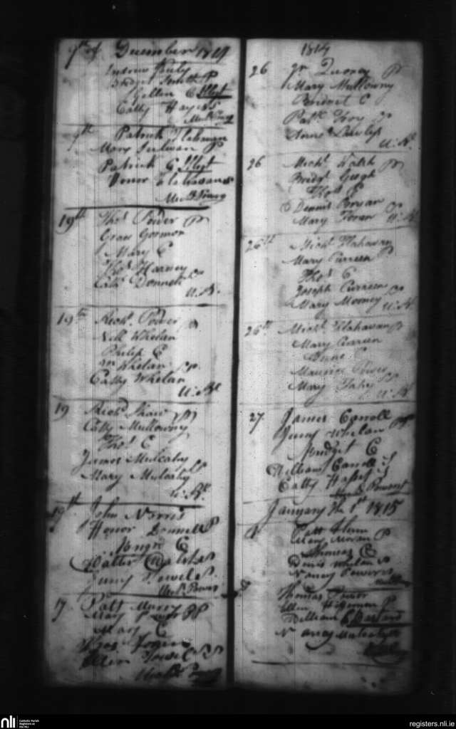 Stradbally; County of Waterford; Diocese of Waterford and Lismore. Baptisms, Dec. 1814 to Jan. 1815