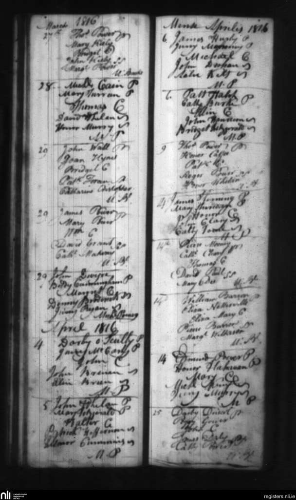 Stradbally; County of Waterford; Diocese of Waterford and Lismore. Baptisms, Mar. 1816 to Apr. 1816
