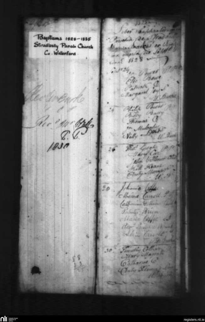Stradbally; County of Waterford; Diocese of Waterford and Lismore. Baptisms, Sep. 1828