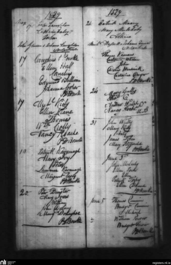 Stradbally; County of Waterford; Diocese of Waterford and Lismore. Baptisms, May 1829 to June 1829