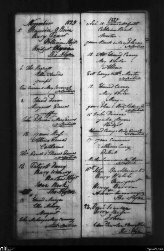 Stradbally; County of Waterford; Diocese of Waterford and Lismore. Baptisms, Nov. 1829