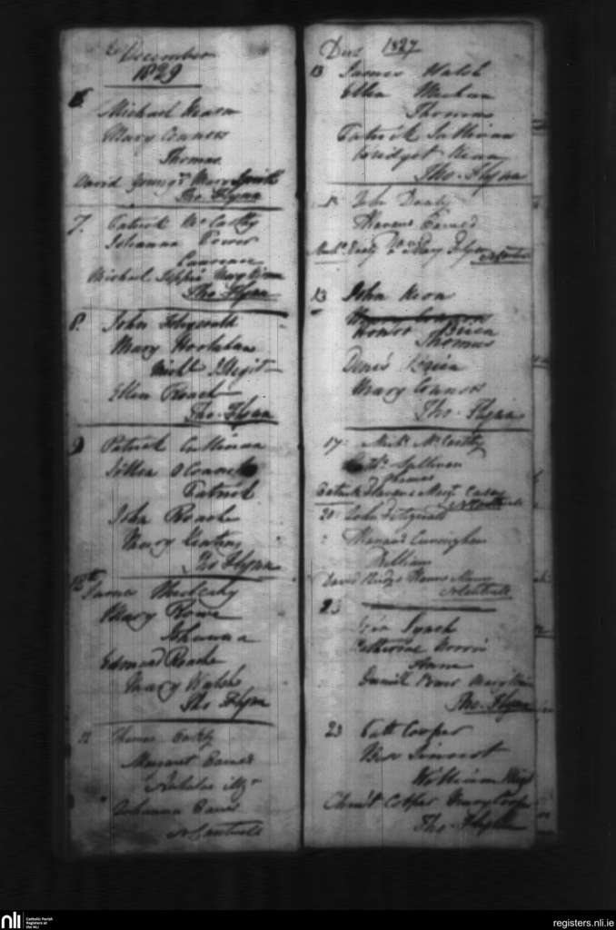 Stradbally; County of Waterford; Diocese of Waterford and Lismore. Baptisms, Dec. 1829