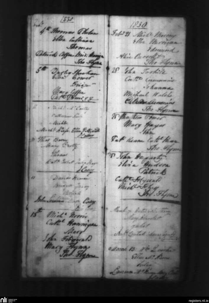 Stradbally; County of Waterford; Diocese of Waterford and Lismore. Baptisms, Feb. 1830 to Mar. 1830