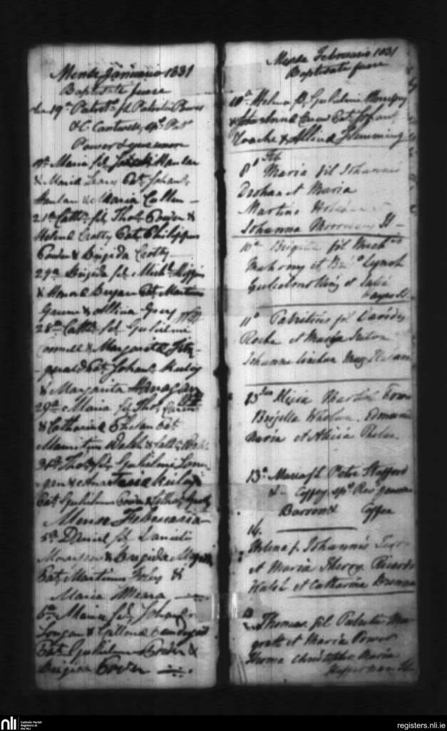Stradbally; County of Waterford; Diocese of Waterford and Lismore. Baptisms, Jan. 1831 to Feb. 1831