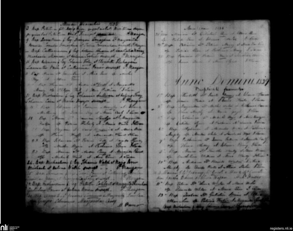 Stradbally; County of Waterford; Diocese of Waterford and Lismore. Baptisms, Dec. 1838 to Jan. 1839