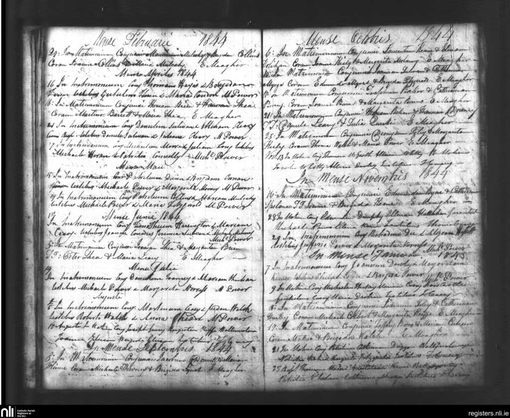 Stradbally; County of Waterford; Diocese of Waterford and Lismore. Marriages, Feb. 1844 to Jan. 1845