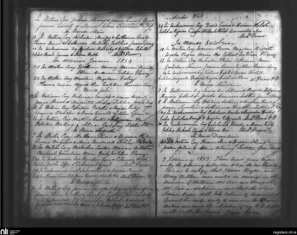 Stradbally; County of Waterford; Diocese of Waterford and Lismore. Marriages, Feb. 1854 to Jan. 1855