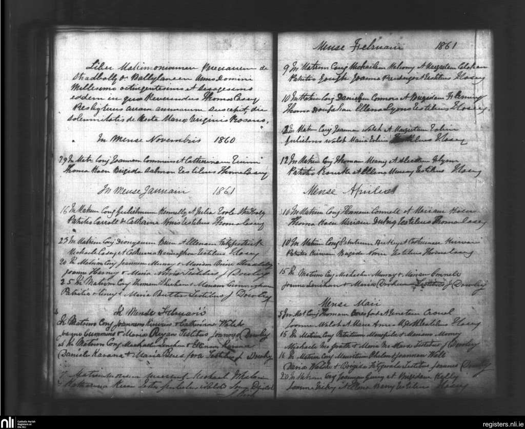 Stradbally; County of Waterford; Diocese of Waterford and Lismore. Marriages, Sep. 1860 to May 1861