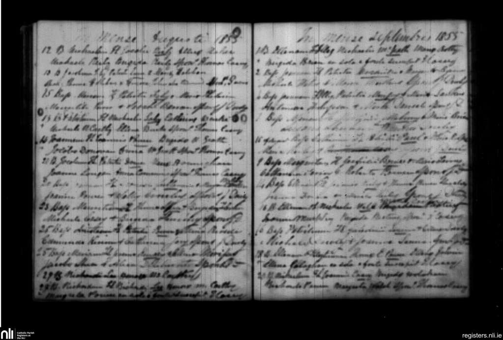 Stradbally; County of Waterford; Diocese of Waterford and Lismore. Baptisms, Aug. 1855 to Sep. 1855