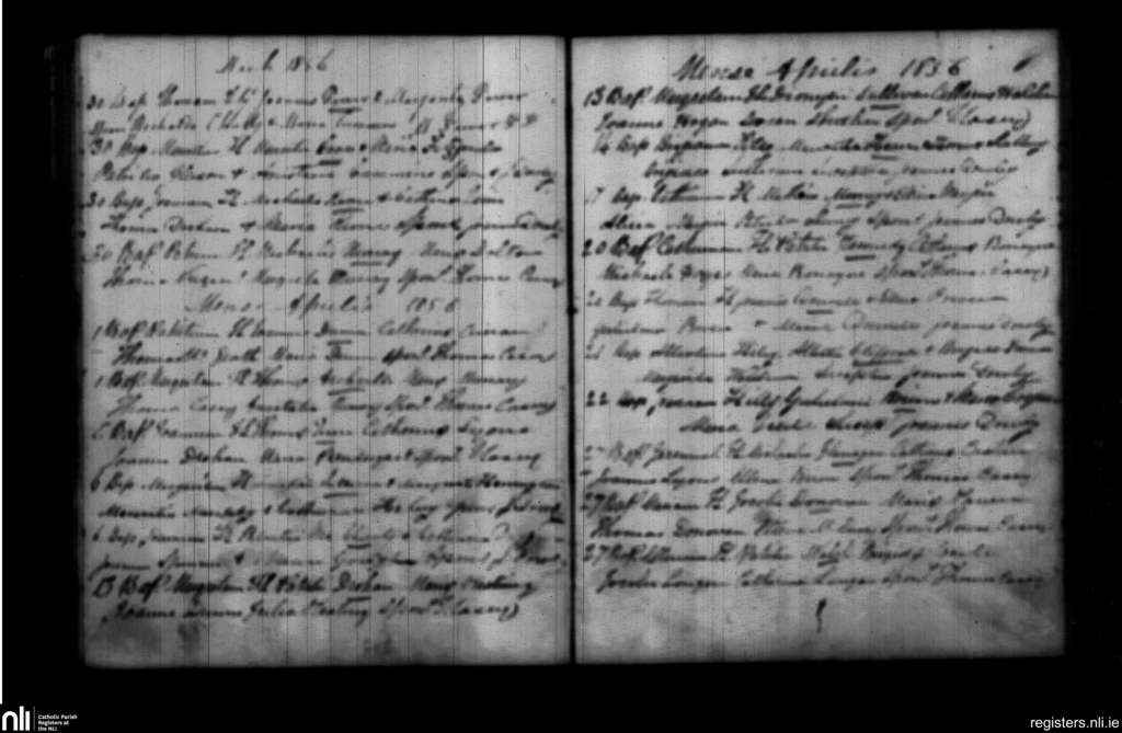 Stradbally; County of Waterford; Diocese of Waterford and Lismore. Baptisms, Mar. 1856 to Apr. 1856