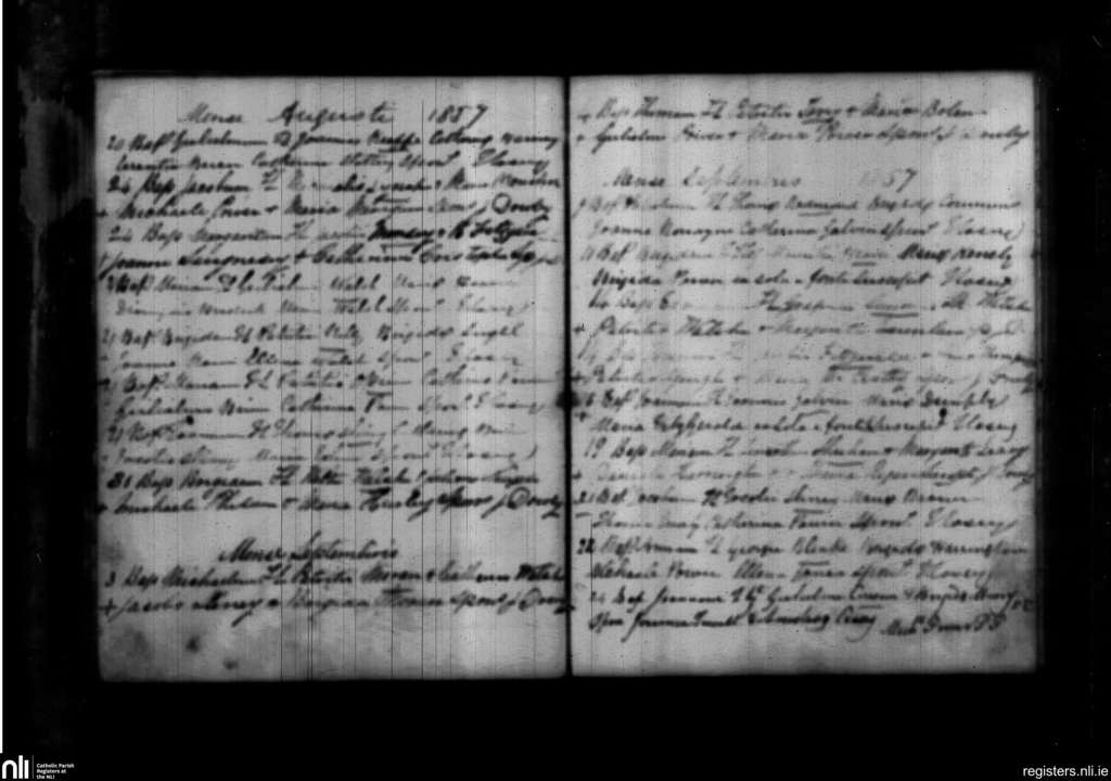 Stradbally; County of Waterford; Diocese of Waterford and Lismore. Baptisms, Aug. 1857 to Sep. 1857