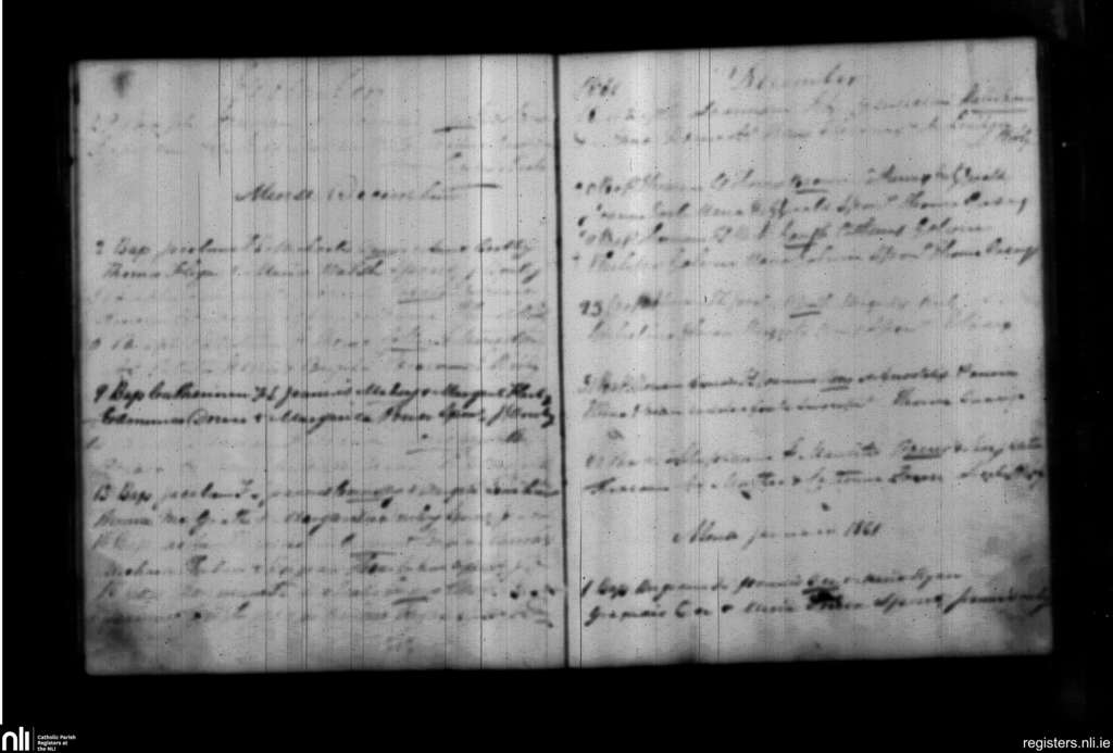 Stradbally; County of Waterford; Diocese of Waterford and Lismore. Baptisms, Nov. 1860 to Jan. 1861