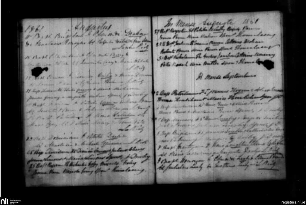 Stradbally; County of Waterford; Diocese of Waterford and Lismore. Baptisms, Aug. 1861 to Sep. 1861