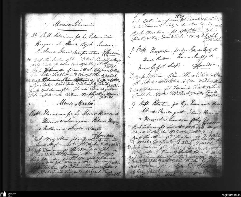 Ballylooby; County of Tipperary; Diocese of Waterford and Lismore. Baptisms, Feb. 1829 to Mar. 1829