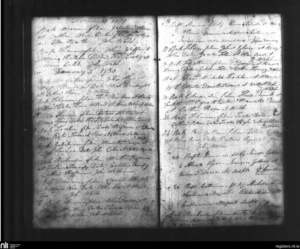 Ballylooby; County of Tipperary; Diocese of Waterford and Lismore. Baptisms, Dec. 1829 to Jan. 1830