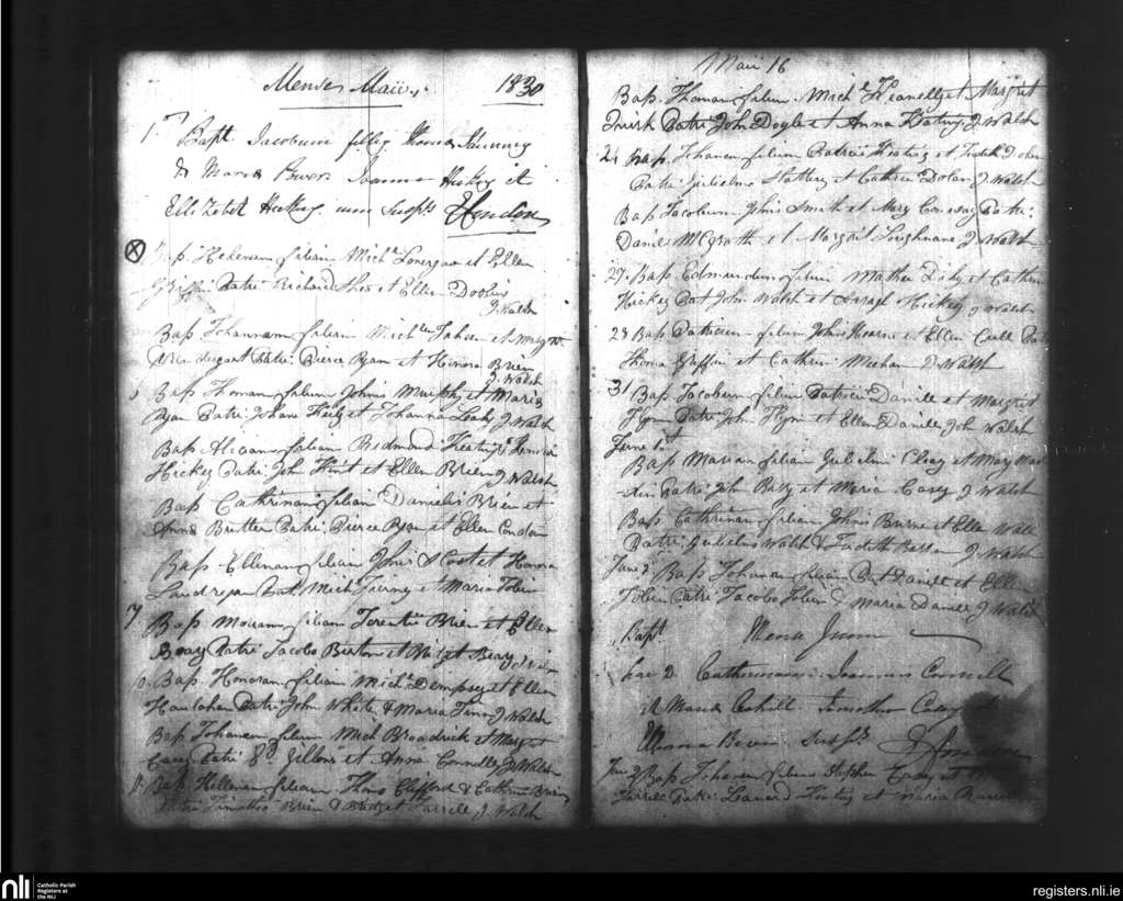 Ballylooby; County of Tipperary; Diocese of Waterford and Lismore. Baptisms, May 1830 to June 1830