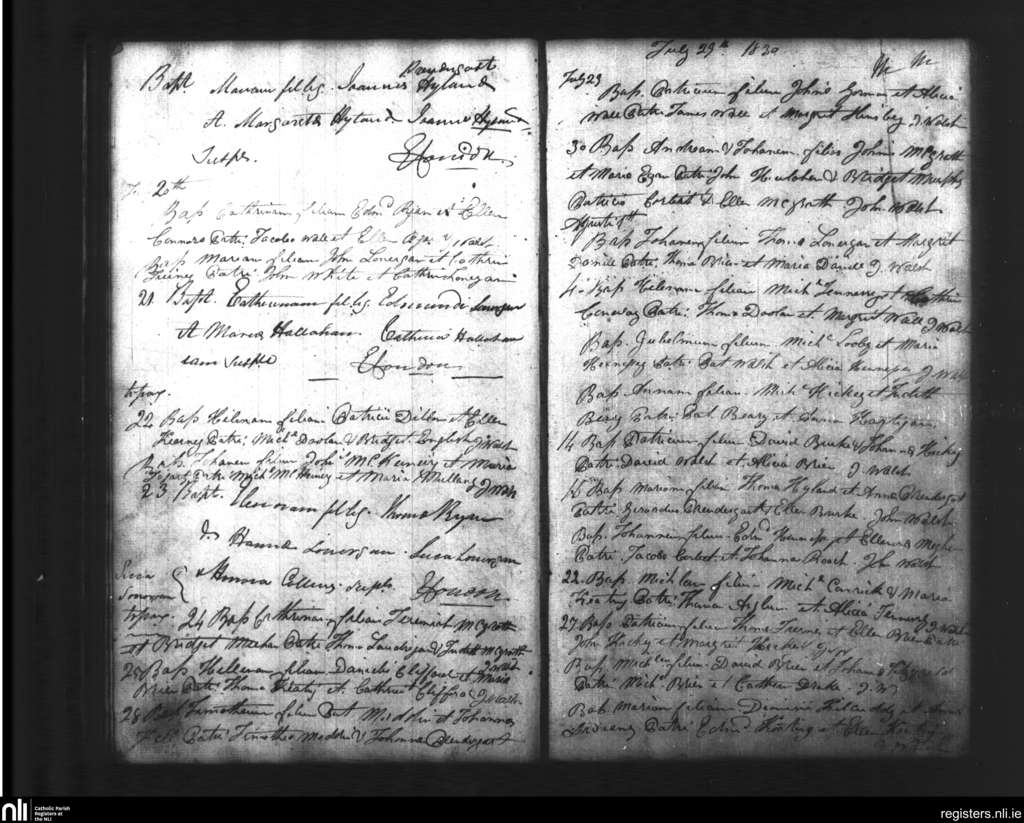 Ballylooby; County of Tipperary; Diocese of Waterford and Lismore. Baptisms, July 1830 to Aug. 1830