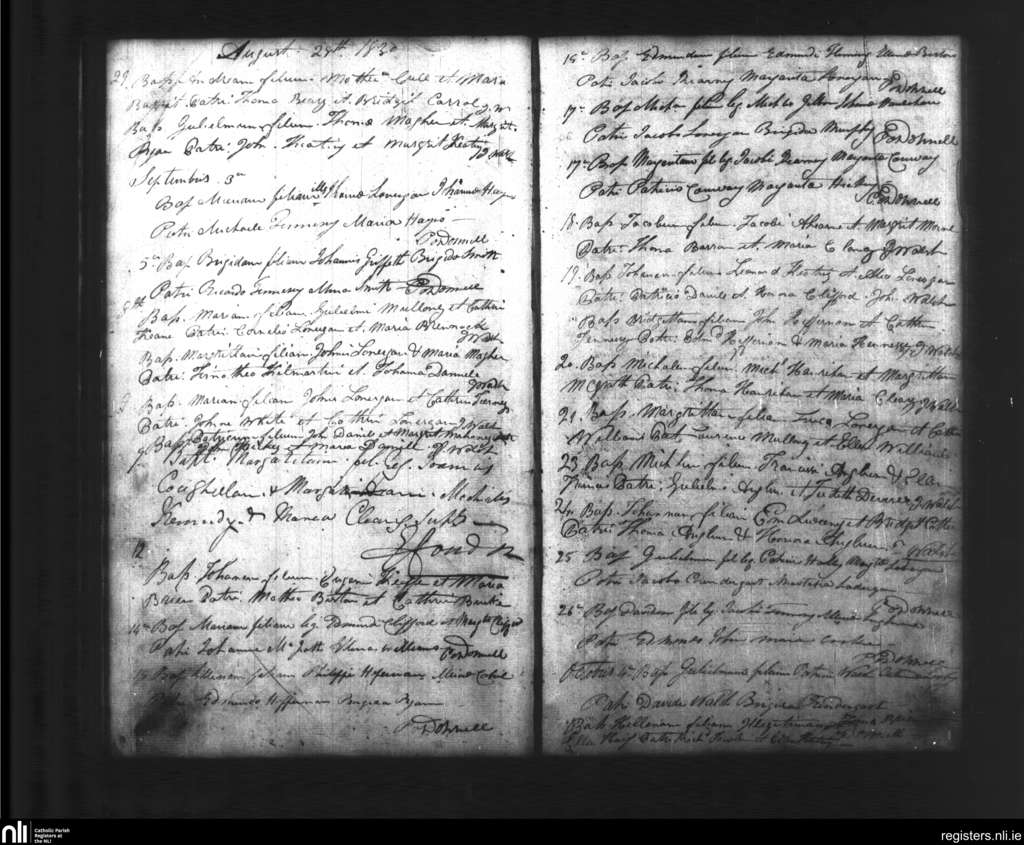 Ballylooby; County of Tipperary; Diocese of Waterford and Lismore. Baptisms, Aug. 1830 to Oct. 1830