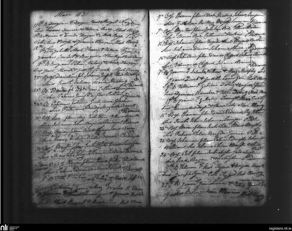 Ballylooby; County of Tipperary; Diocese of Waterford and Lismore. Baptisms, May 1831 to June 1831