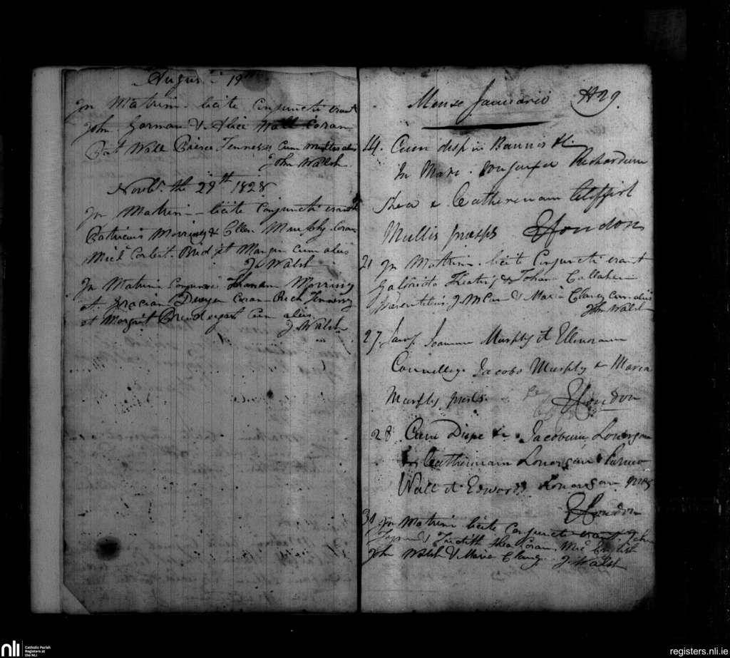 Ballylooby; County of Tipperary; Diocese of Waterford and Lismore. Marriages, Aug. 1828 to Jan. 1829