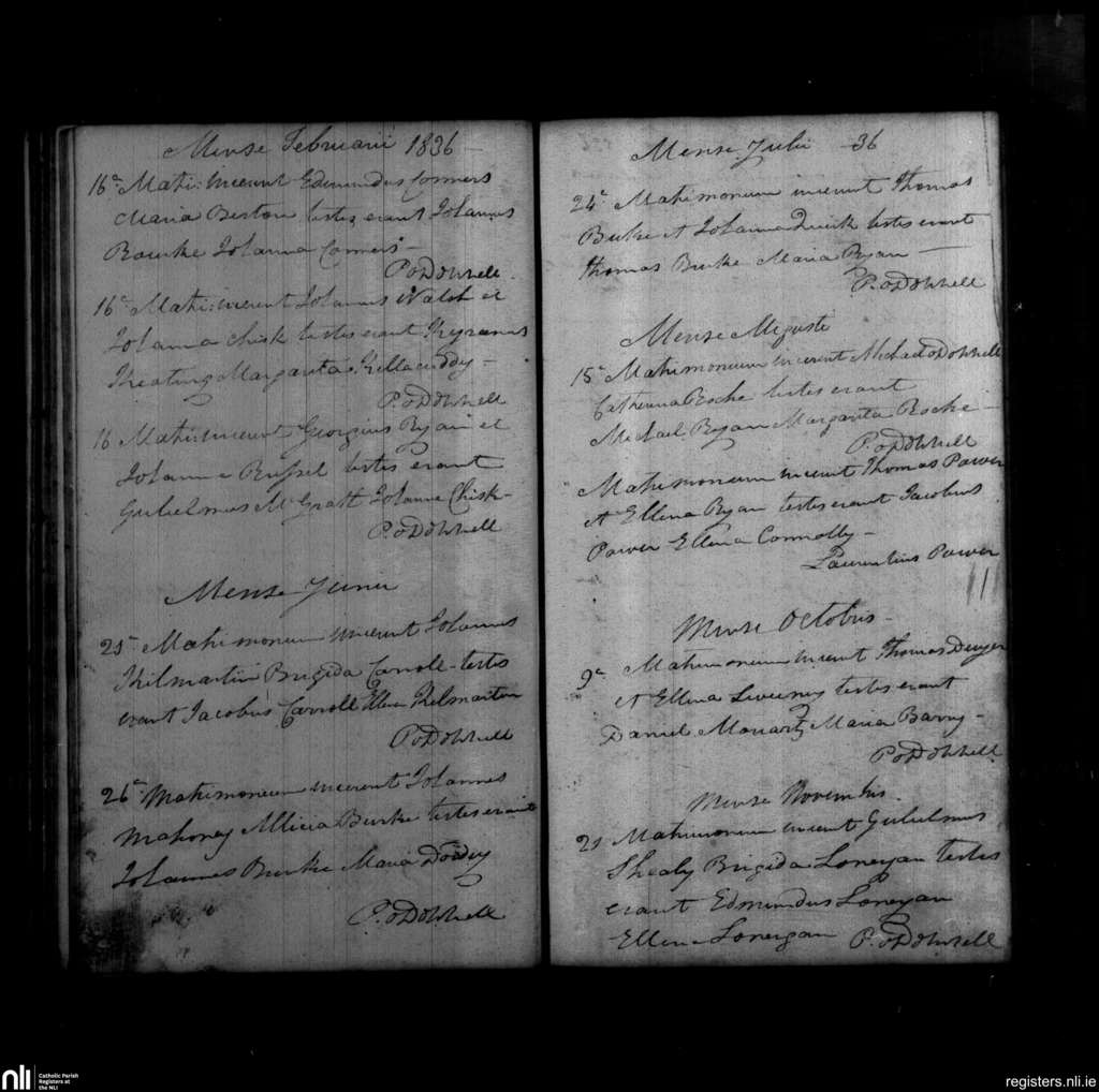 Ballylooby; County of Tipperary; Diocese of Waterford and Lismore. Marriages, Feb. 1836 to Nov. 1836