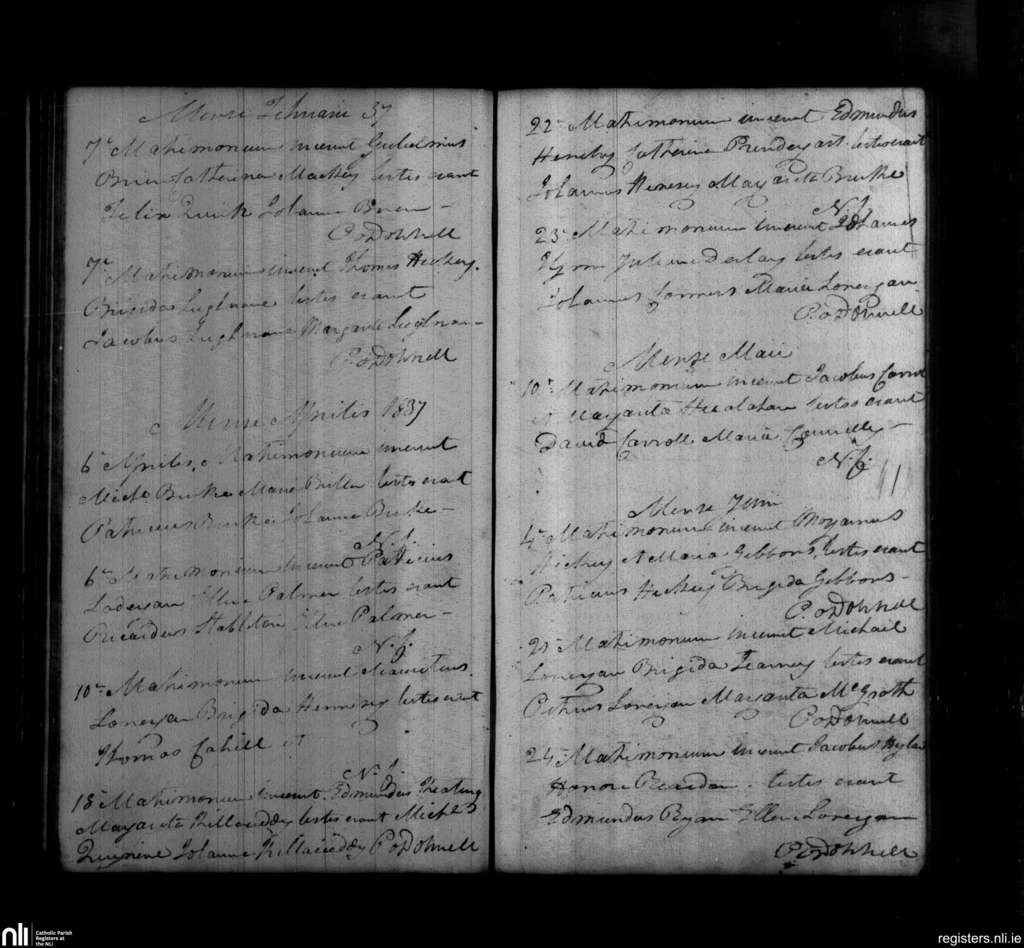 Ballylooby; County of Tipperary; Diocese of Waterford and Lismore. Marriages, Feb. 1837 to June 1837