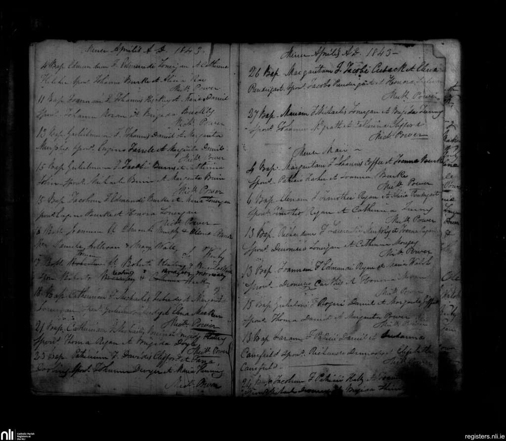 Ballylooby; County of Tipperary; Diocese of Waterford and Lismore. Baptisms, Apr. 1843 to May 1843