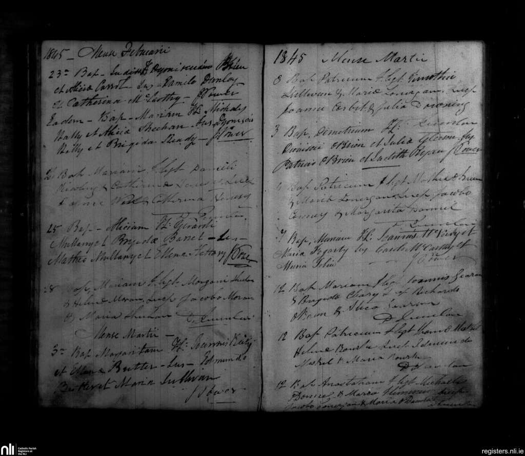 Ballylooby; County of Tipperary; Diocese of Waterford and Lismore. Baptisms, Feb. 1845 to Mar. 1845