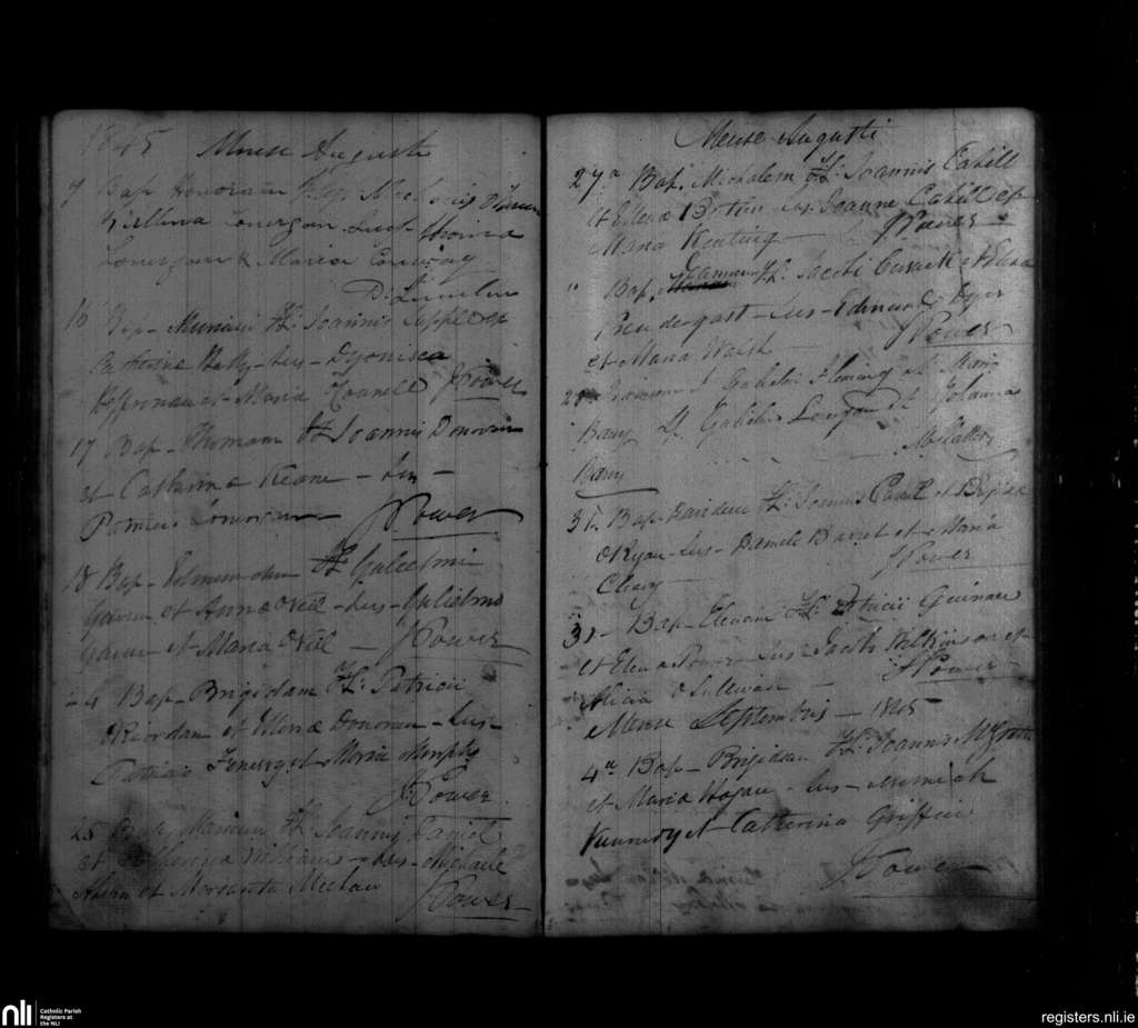 Ballylooby; County of Tipperary; Diocese of Waterford and Lismore. Baptisms, Aug. 1845 to Sep. 1845