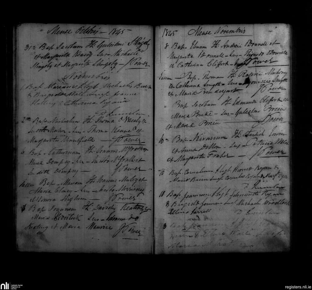 Ballylooby; County of Tipperary; Diocese of Waterford and Lismore. Baptisms, Oct. 1845 to Nov. 1845