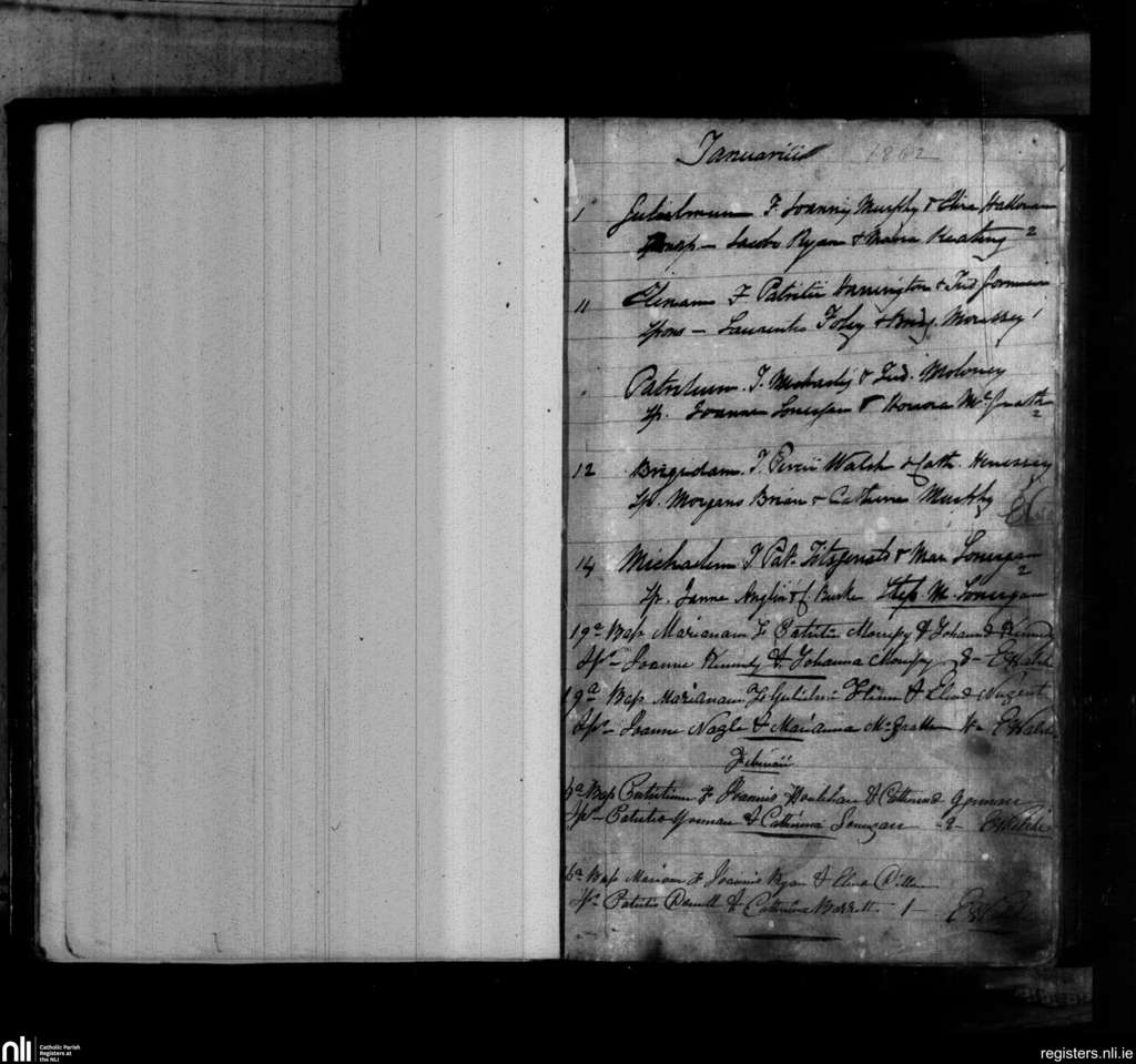Ballylooby; County of Tipperary; Diocese of Waterford and Lismore. Baptisms, Jan. 1862 to Feb. 1862