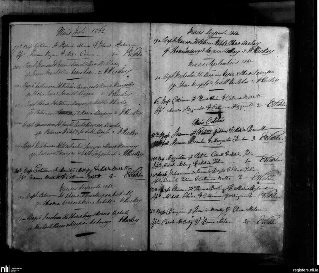 Ballylooby; County of Tipperary; Diocese of Waterford and Lismore. Baptisms, July 1862 to Oct. 1862