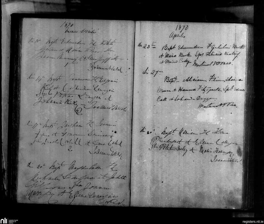 Ballylooby; County of Tipperary; Diocese of Waterford and Lismore. Baptisms, Apr. 1870