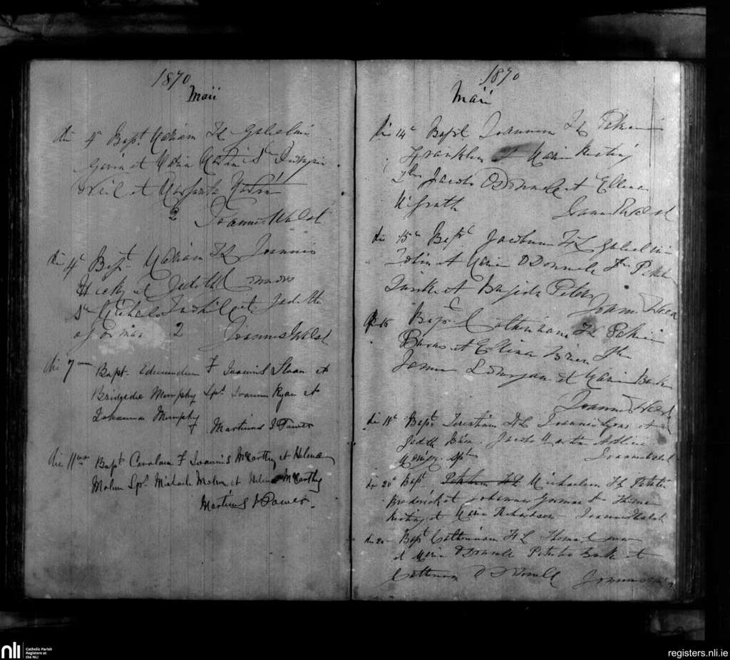 Ballylooby; County of Tipperary; Diocese of Waterford and Lismore. Baptisms, May 1870