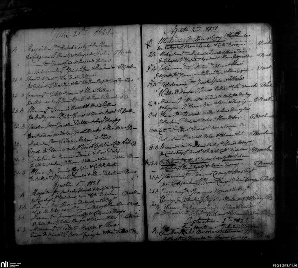 Templetenny; County of Tipperary; Diocese of Waterford and Lismore. Baptisms, July 1821 to Sep. 1821
