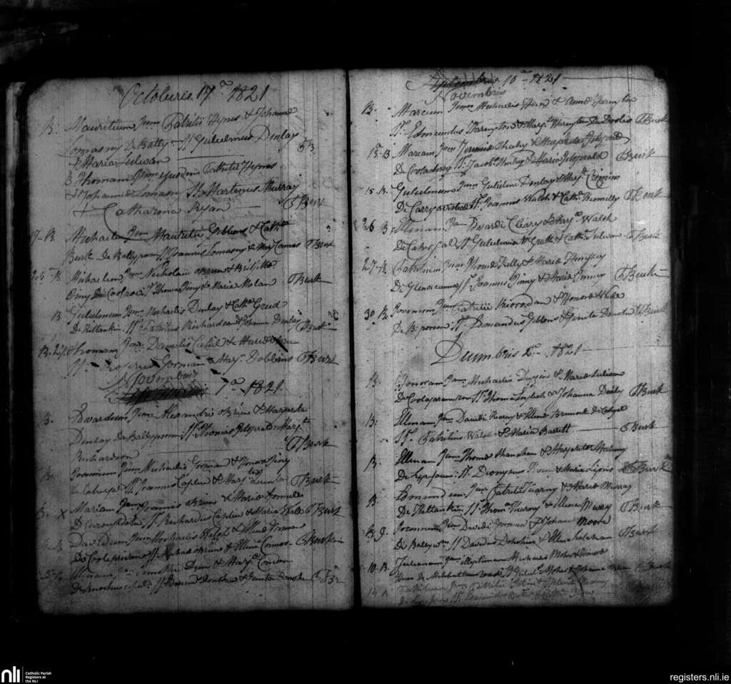 Templetenny; County of Tipperary; Diocese of Waterford and Lismore. Baptisms, Oct. 1821 to Dec. 1821