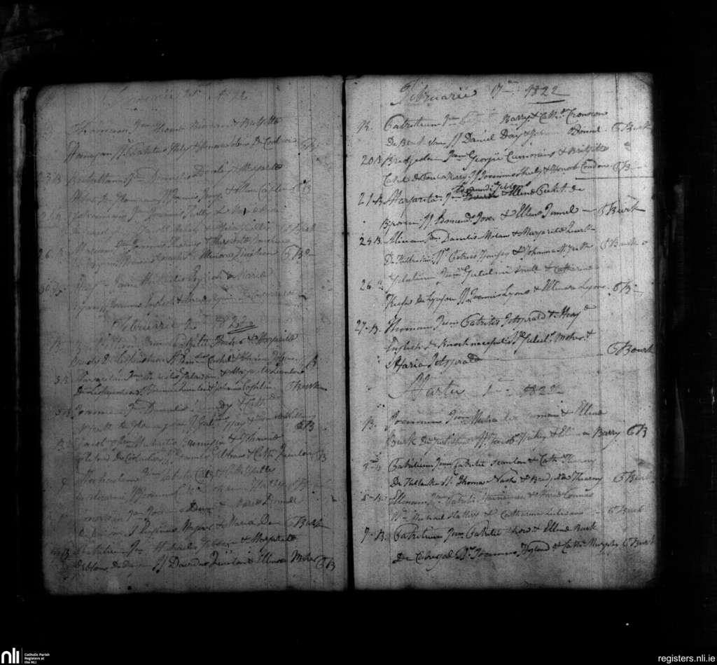 Templetenny; County of Tipperary; Diocese of Waterford and Lismore. Baptisms, Jan. 1822 to Mar. 1822