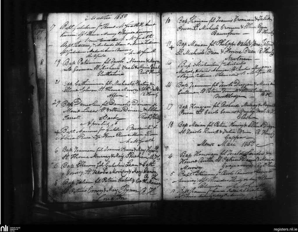 Modeligo; County of Waterford; Diocese of Waterford and Lismore. Baptisms, Mar. 1850 to May 1850