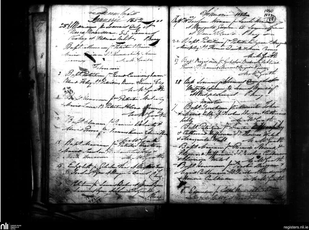 Modeligo; County of Waterford; Diocese of Waterford and Lismore. Baptisms, Jan. 1852 to Mar. 1852