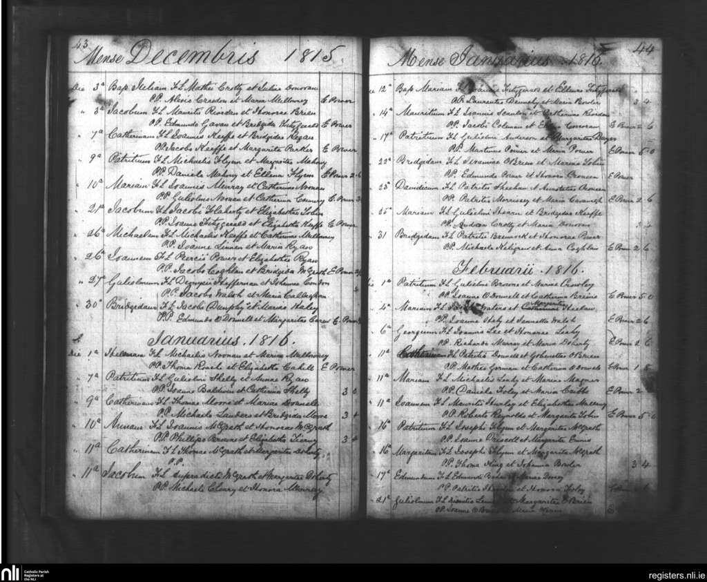 Cappoquin; County of Waterford; Diocese of Waterford and Lismore. Baptisms, Dec. 1815 to Feb. 1816