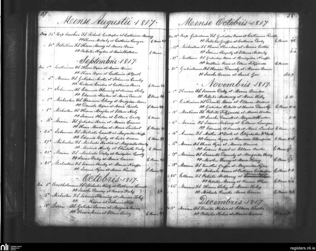 Cappoquin; County of Waterford; Diocese of Waterford and Lismore. Baptisms, Aug. 1817 to Dec. 1817