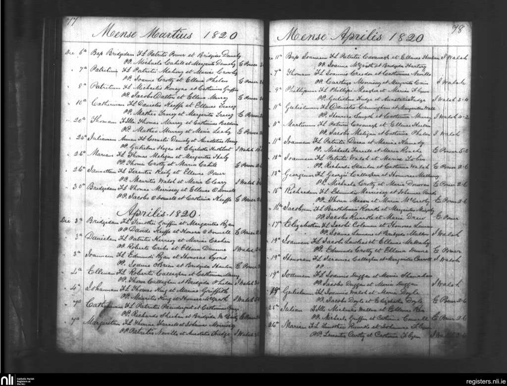 Cappoquin; County of Waterford; Diocese of Waterford and Lismore. Baptisms, Mar. 1820 to Apr. 1820