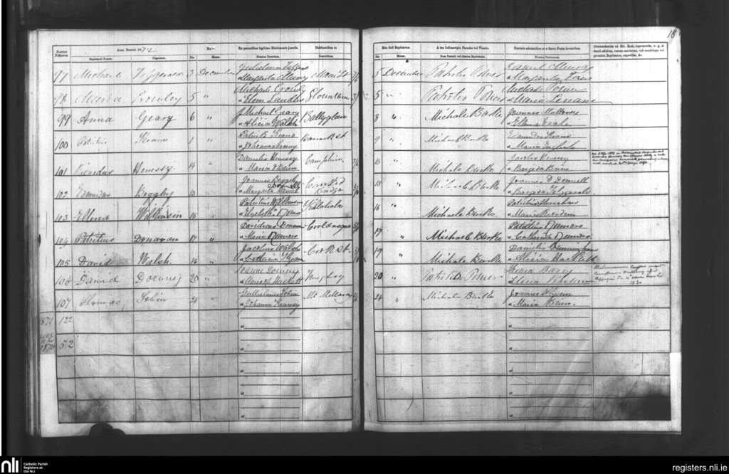 Cappoquin; County of Waterford; Diocese of Waterford and Lismore. Baptisms, Dec. 1872