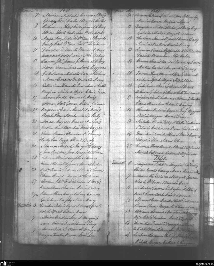 Ballyagran; County of Limerick, Cork; Diocese of Limerick. Baptisms, Nov. 1841 to Jan. 1842