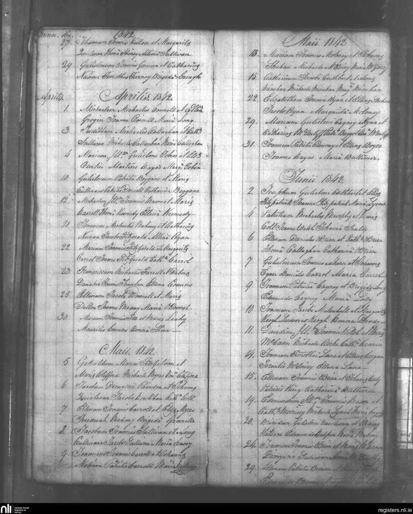Ballyagran; County of Limerick, Cork; Diocese of Limerick. Baptisms, Mar. 1842 to June 1842
