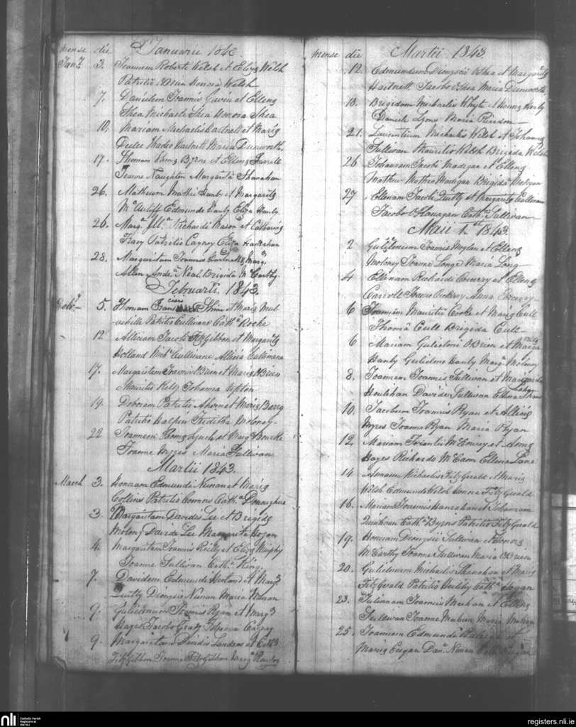 Ballyagran; County of Limerick, Cork; Diocese of Limerick. Baptisms, Jan. 1843 to May 1843