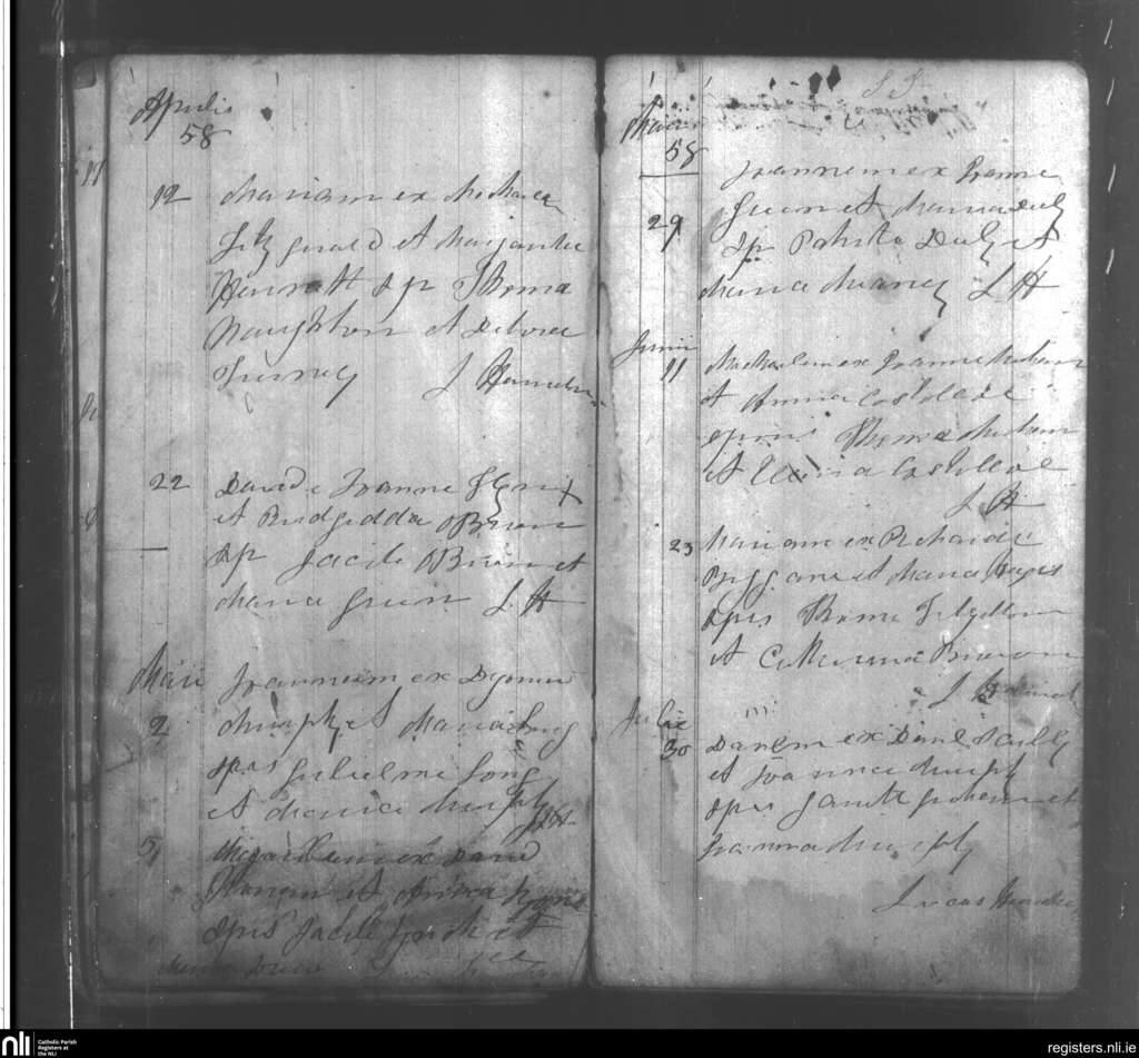 Ballyagran; County of Cork, Limerick; Diocese of Limerick. Baptisms, Apr. 1858 to July 1858