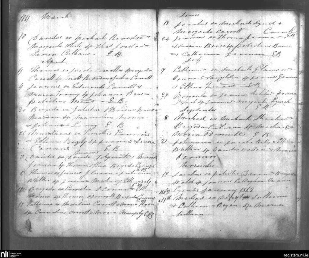 Ballyagran; County of Limerick, Cork; Diocese of Limerick. Baptisms, Mar. 1861 to Jan. 1862