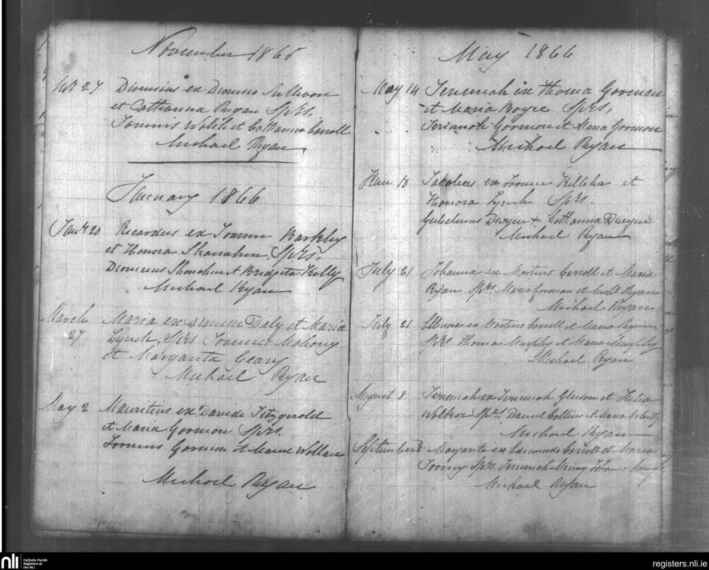 Ballyagran; County of Limerick, Cork; Diocese of Limerick. Baptisms, Nov. 1865 to Sep. 1866