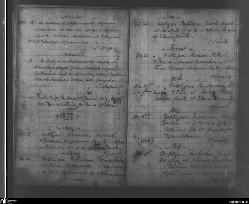 Ballyagran; County of Limerick, Cork; Diocese of Limerick. Baptisms, Nov. 1876 to Feb. 1878